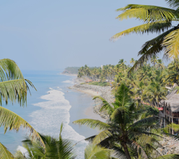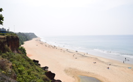 Days 7-9: Bus and train to Varkala; walk and relax. Left the guesthouse at 9.20 am and caught the 9.40 am bus to Kottayam, arriving 12.50 pm (it is downhill in this direction). Walked to the train station. Chatted with a couple from London heading in the same direction as me. Train arrived precisely one hour late at 3.40 pm. Arrived in Varkala at 6.05 pm and got a taxi to my very nice guesthouse (pre-booked from Thekkady). Went out for dinner at 7.30 pm. The next day, after breakfast, I walked north along the coast for a bit, taking lots of photos, then rested in my guesthouse, and then explored south along the coast, which was less successful owing to the absence of a coastal path. Went out for beer followed by dinner at 5.50 pm. I got up at 7.10 am the following day and visited the main Varkala temple, which I found only mildly interesting having visited several much larger Hindu temples before, on Bali for example. Came back to the guesthouse, showered, and went for breakfast at 9.30 am. Walked north along the coast again, this time continuing much further, reaching Kappil Beach and the lagoon. Arrived back at the guesthouse at 1.40 pm and spent most of the afternoon sitting in the garden. Went out for dinner at 6 pm.